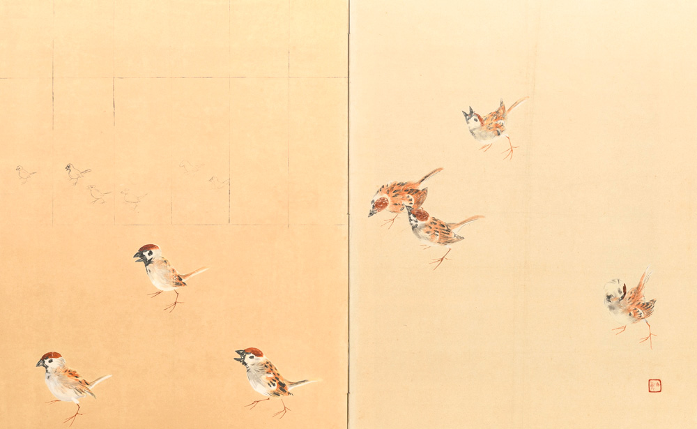 襖絵、扇絵は5年の歳月をかけて完成し、竹内栖鳳氏の15回忌に合わせてお披露目されました。